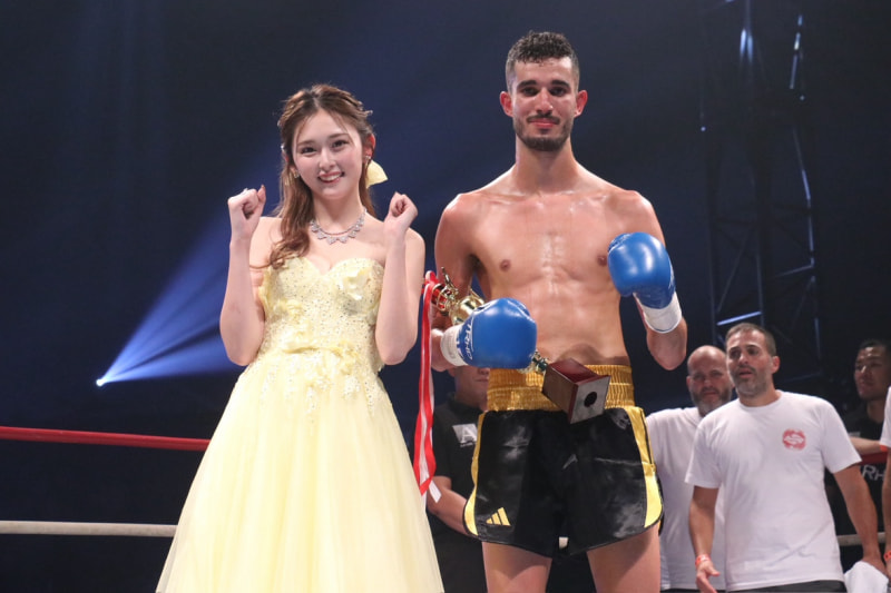 勝利したアイメリック・ラジジとゆうちゃみ(左)