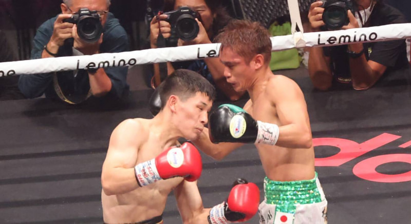 松本(左)の頭が高田の顔面にヒット!これで高田が倒れる
