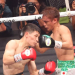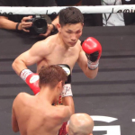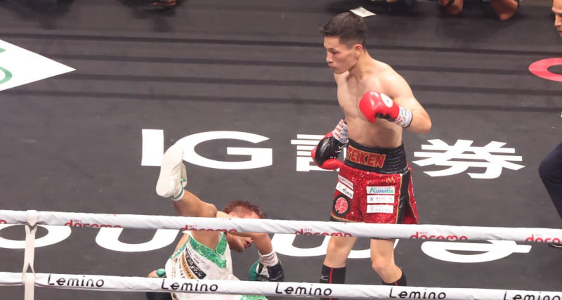 松本(右)がバッティングの負傷判定で勝利、新世界王者に