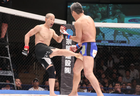 郷野が近藤にキックを放つ