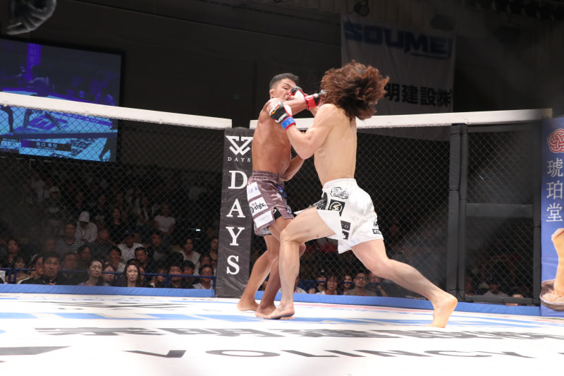 濱口が力也の顔面にパンチ