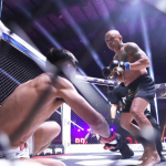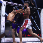 クサノがて攻勢するも内藤が右フック