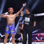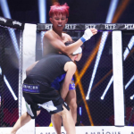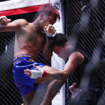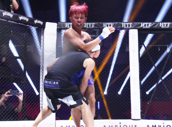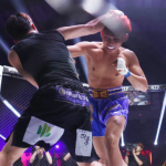 オビエルがせーやの首を押さえながらパンチ連打