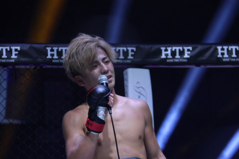 勝利マイクで涙ぐむ