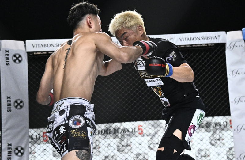 かずきんぐ(右)にパンチを打ち込むKINGカズ(左)