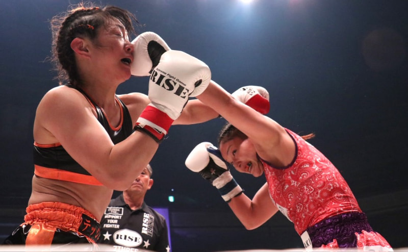 パンチをヒットさせる吉田(右)