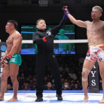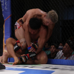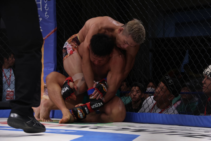下になった北岡が気合の関節技!