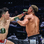 パンチを当てるウォンビン