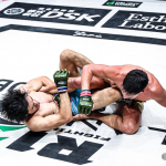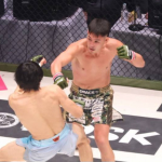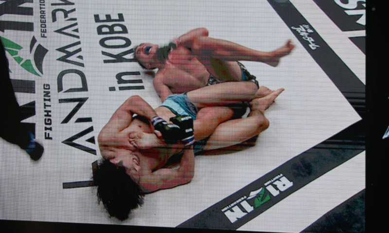 激痛の膝十字!(会場の大型スクリーンより)