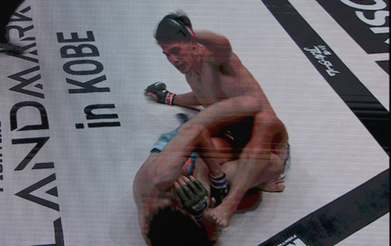 膝十字を仕掛ける桜庭(会場の大型スクリーンより)