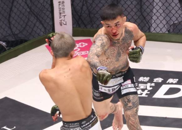 萩原の強烈な右のパンチ