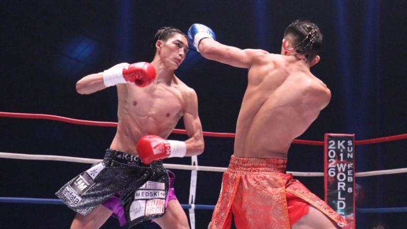 大久保(左)が下がるユートンをパンチで攻める