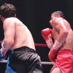 フェルドンクのパンチとストーヤンのヒザ蹴りが交差する
