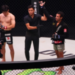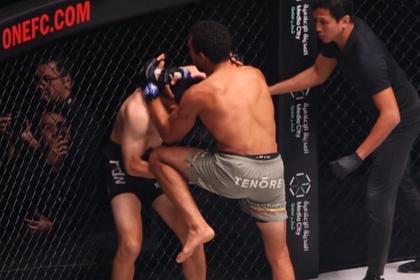 ルオトロがヒザ蹴りを突き刺す