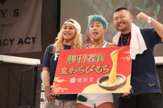2R、パクは1Rと同じく組みからバックに回ると、亀の状態の彩綺の右腕を両脚で挟みつつ顔面へ鉄槌を連打。一度は抜け出した彩綺だが、パクは再び彩綺の腕を挟むとさらに鉄槌。何十発も鉄槌の雨を降らせ続けると、動けない彩綺を見てレフェリーがストップ。 パクが圧倒的な総合力を見せて王座陥落以来の再起戦で白星を挙げた。