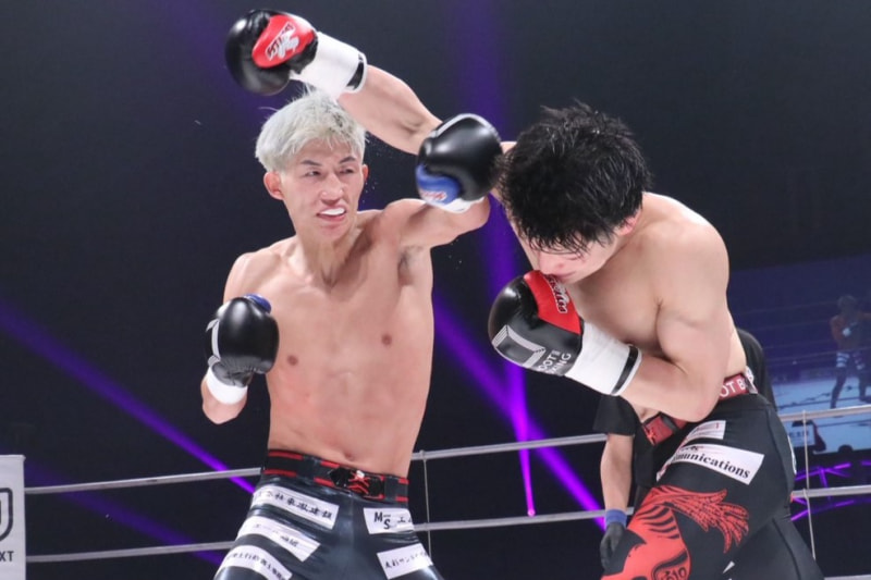 安本がパンチを当てる