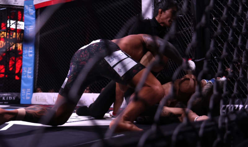 メカ君が鉄槌連打!レフェリーストップでKO勝ちした