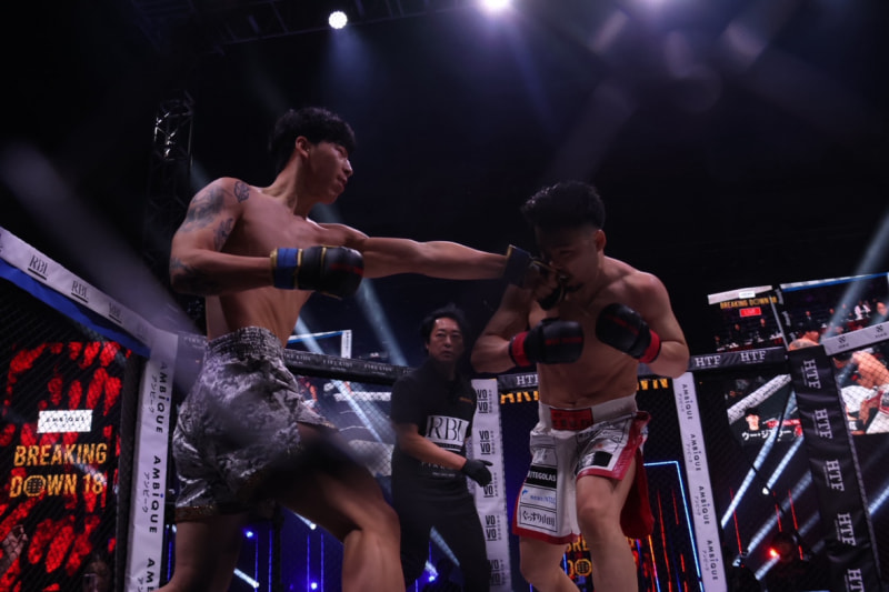 ウー・ジアラーが山本の顔面にパンチをヒット