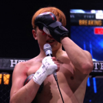 勝利し涙ながらにコメントする井原