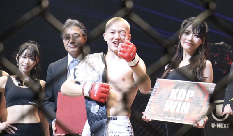 ベルトを巻いた栁川
