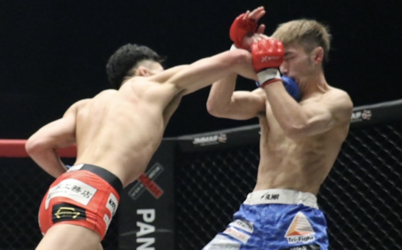 田嶋が右のパンチをヒットさせる