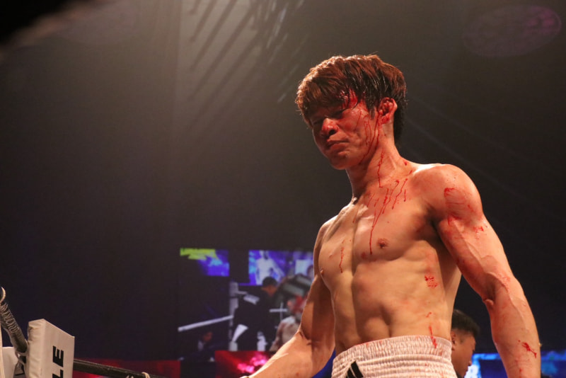 顔から流血する町田