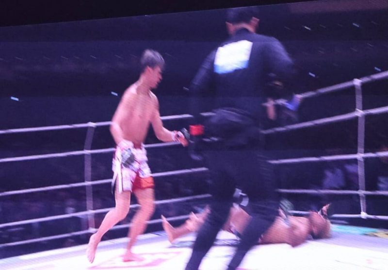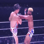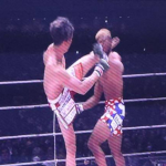 ベイノアがダウンを奪う(会場の大型ビジョンより)