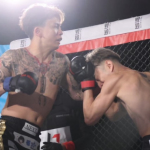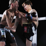 勢い良くパンチを当てる龍志