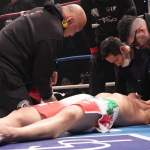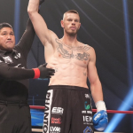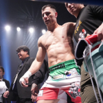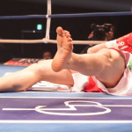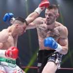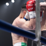 サッタリ(左)が身長2mのルーカス相手に奮闘も、KO負けを喫した