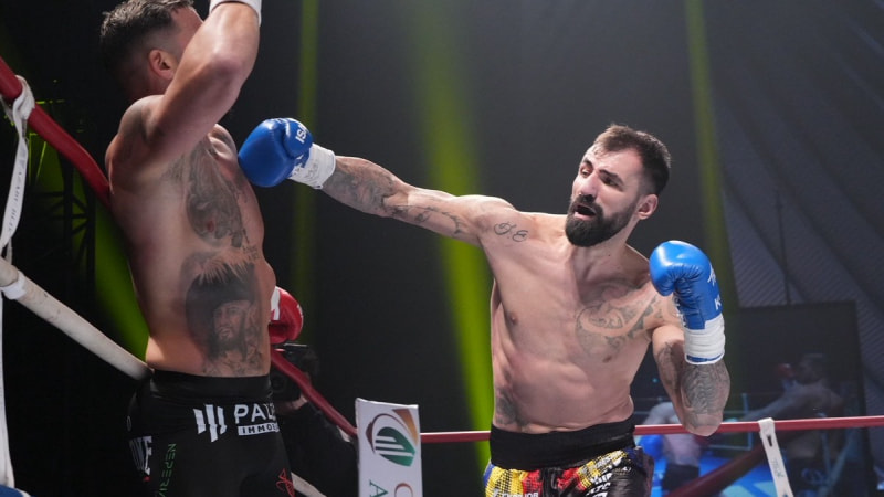ストイカ(右)が前に出てパンチで攻める