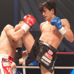 ヒザ蹴りを突き上げる松山