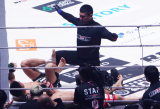 ▼【フォト】鹿志村がチョーク一本勝ちの瞬間!所は失神