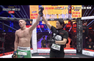 判定は青そうしの2-0で延長も、生田はコーナー近くで仰向けになってしまう。試合前に、陣営からタオルが投げられ、そうしのTKO勝利となった。