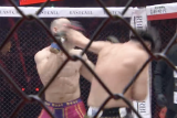【フォト】寿希也のパンチヒット!サンピエールが大きくアゴが上がりダウン、失神