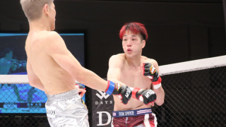 1R、打撃戦から倉本はボディストレート、左フック、右クロスと散らすが、大原も右ストレートを返して反撃。倉本は三日月蹴りを入れ、さらに右クロス、右ストレート。大原は金網を背にしてストレートを返すが、倉本が左右フックから蹴りを繋ぐとこれが大原の下腹部に入ってしまい、体力回復に時間が取られる。