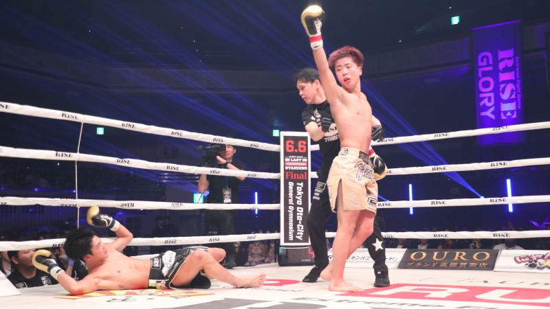 【RISE】那須川龍心、大逆転KOで2階級制覇!5Rに長谷川海翔を3度倒す