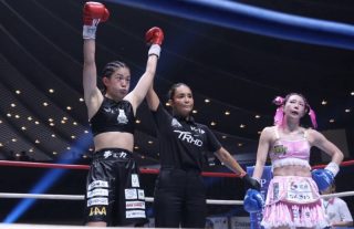 1Rから、Meltyが細かいパンチで先制するが、池内が女子離れしたフィジカルとパンチで押し返し、左右のボディ打ちで後退させる。2Rはいきなり近距離での打ち合い。Meltyはパンチの手数を増やし、前蹴りを放つが、池内は下がらずに右ヒザ蹴り、左右フックで押し返す。
