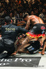 【フォト】ヒザ蹴りでダウン→パウンド連打でストップ!