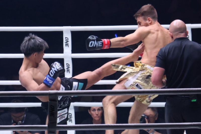 キックを蹴り込む与座