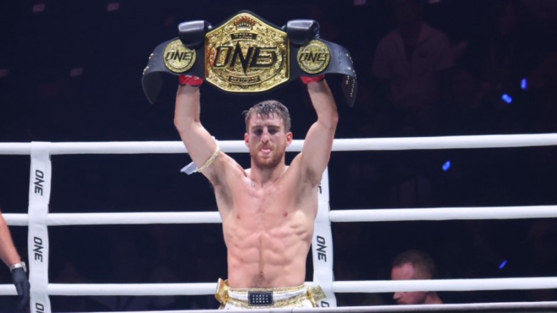 ベルトを掲げるハガティ―