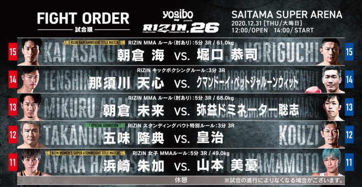 大晦日のRIZIN、注目の生中継枠はメインから第11試合までと決まった