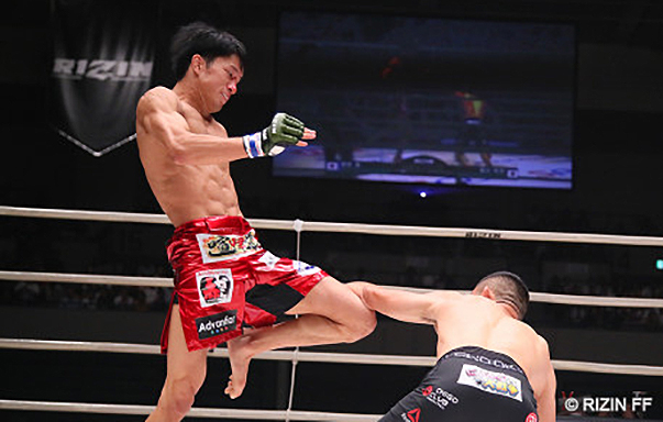 試合で膝蹴りを放つ朝倉海(対堀口恭司戦)