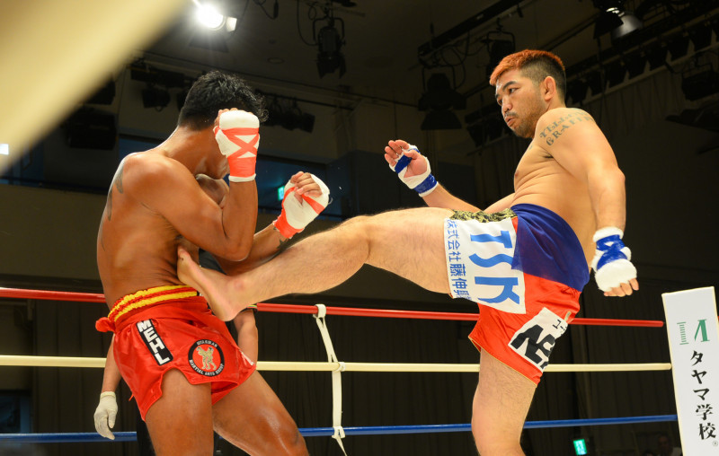 得意の三日月蹴りを繰り出す渡慶次
