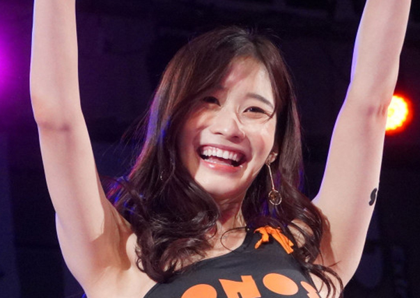 RISEガール高橋凛が、K-1の会場でRISEファイターを応援した