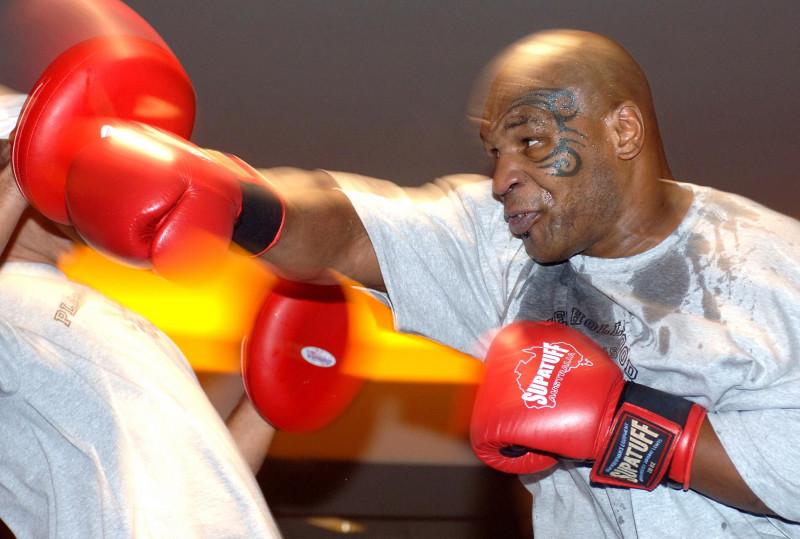 現役時代の激しいマイク・タイソンのミット打ち(2004年ごろ=Naoki Fukuda)