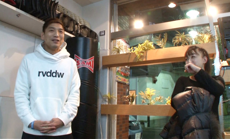 所英男(左)のジムでトレーナーを務める紀子さん