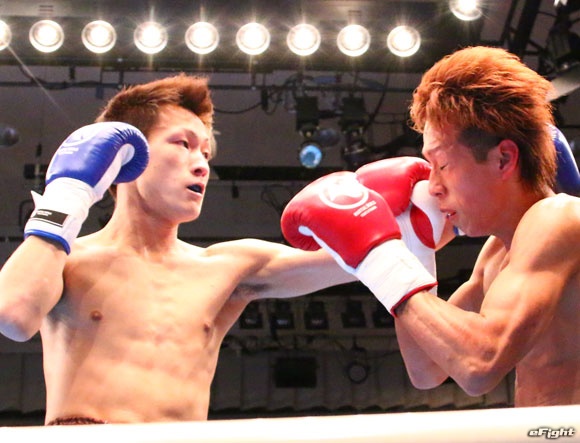 8戦無敗でNJKFフェザー級王座に就いた19歳の半田(左)は今後注目の存在