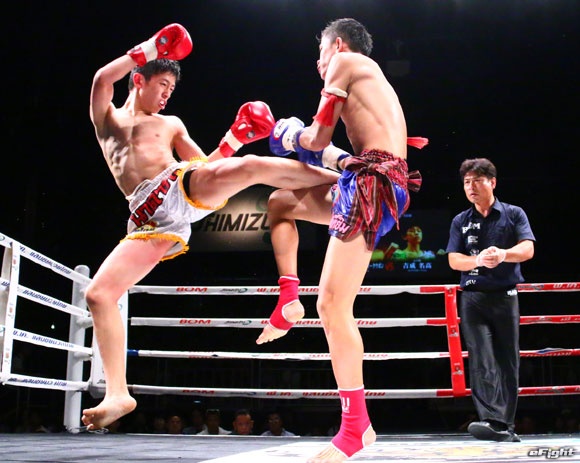 ジュニア王座を総なめにした15歳の天才少年・吉成(左)が、ラジャダムナンを主戦場とする20歳のカーエンイサーン(右)に挑んだ