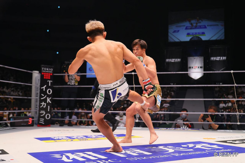 前回の試合の様子、元谷の鋭いローキック