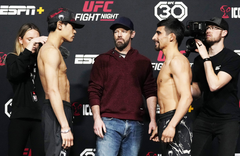 激突する平良(左)とアギラー(右)©️UFC